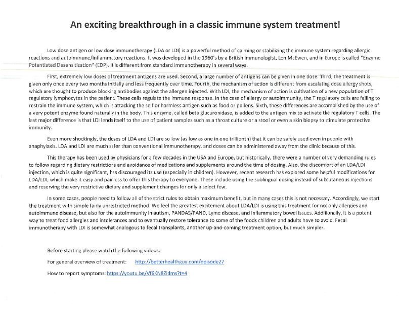 Low Dose Antogen Therapy View fullsize Read Full Article Here, Breakthrough in Classic Immune System Treatment Food Intolerance in Childhood MigraineEffects of SugarEnzyme-Potentiated Desensitization in Children Enzyme-Potentiated HyposensitizationAllergy CareEnzyme-Potentiated Hyposensitization2Food AllergyHay-feverHay-Fever2Hyposensitization in ChildrenMegaSpore Biotic Dosing Instructions LDAAndreanna RainvilleMarch 6, 2018Low Dose Antogen Therapy Facebook0 Twitter Pinterest0 0 Likes